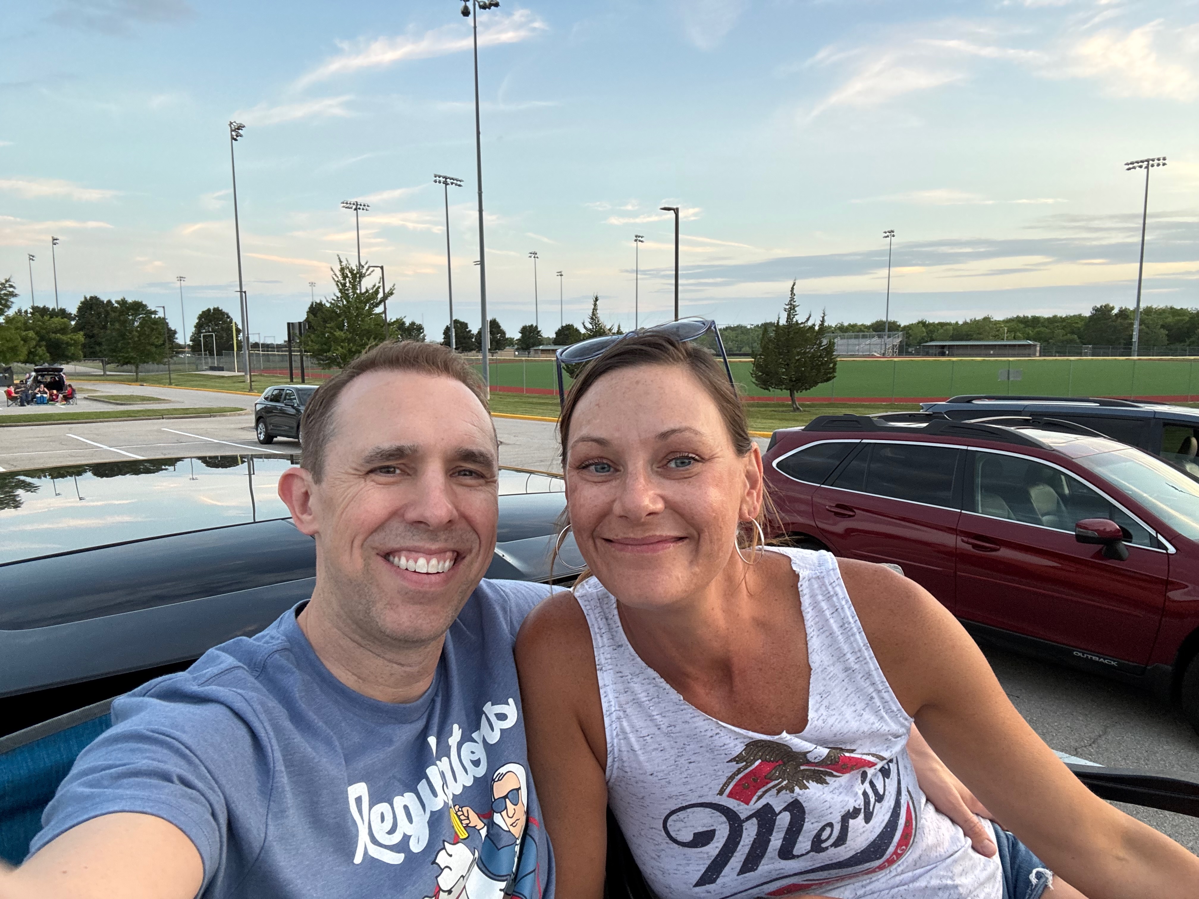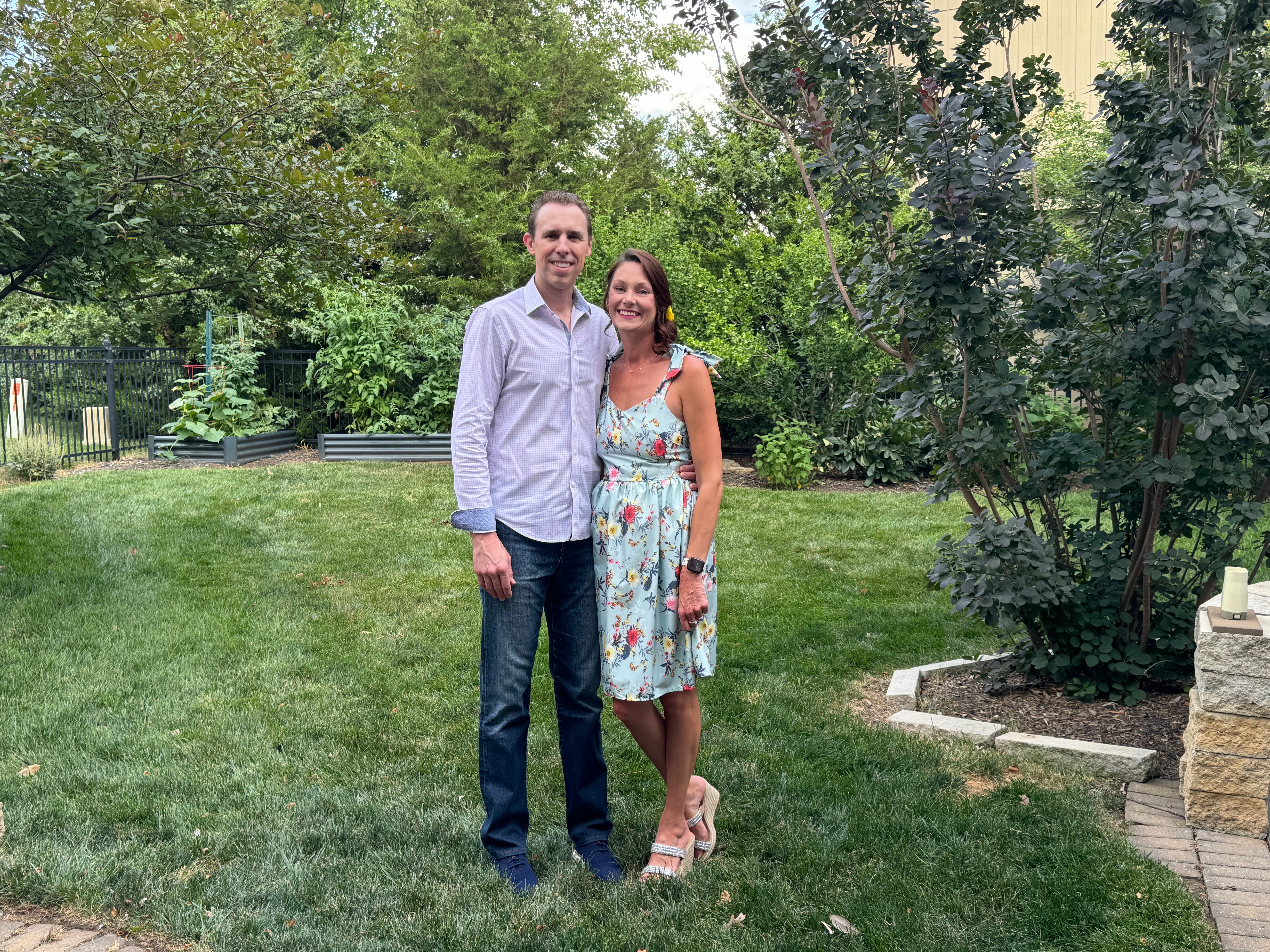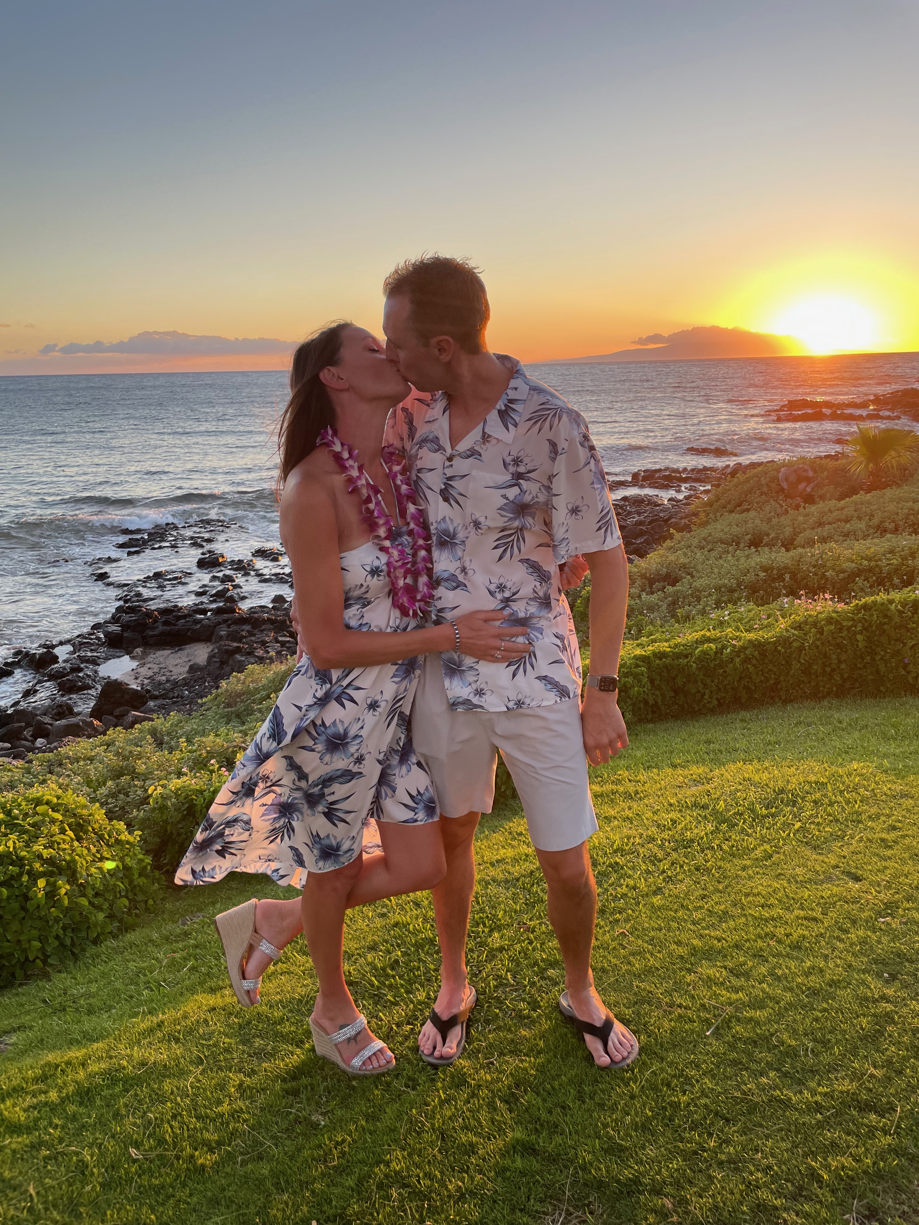 We'll be dressed casually - her in a sundress, him in jean shorts